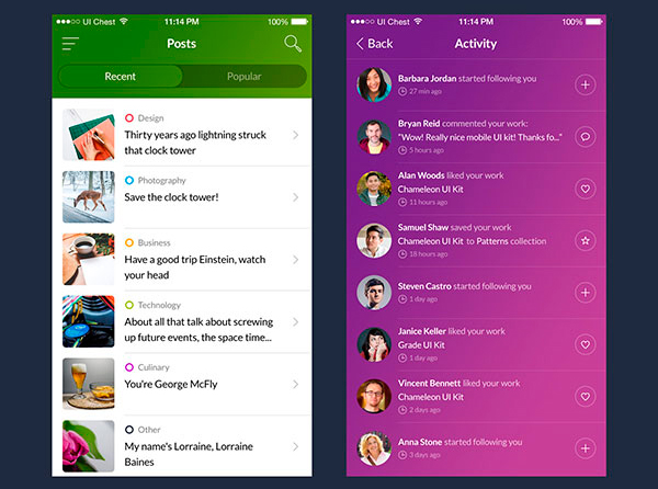 The freebie of the day is Chameleon,a modern UI kit perfect to use for creating a stylish and clean mobile app. This kit includes 10 screens from various categories that can be easily edited.